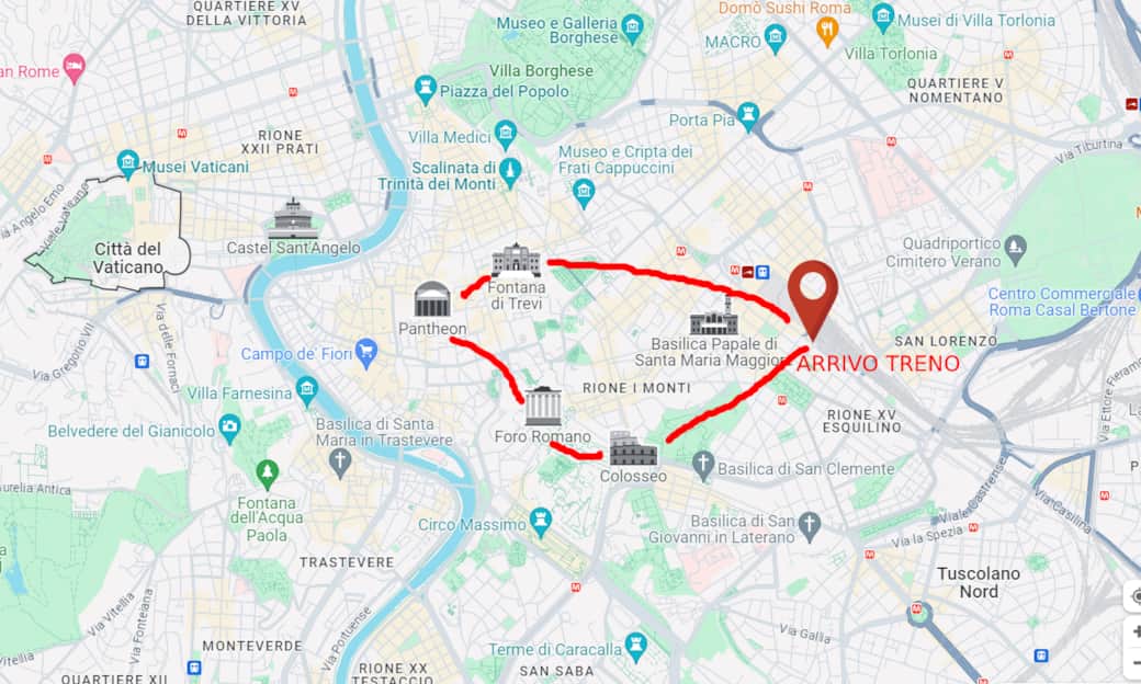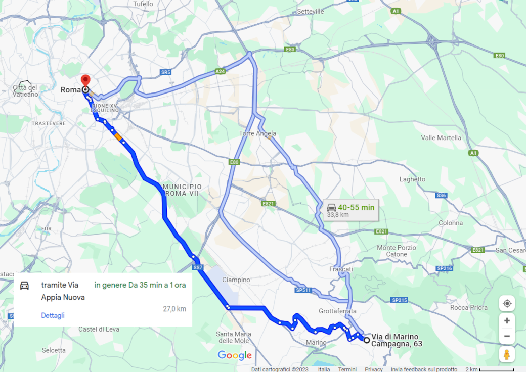 To reach the Romeโs center, it is advisable to take the Via Appia Antica (see map below). 27 Km rich in evidence of ancient Rome as aqueducts and catacombs.